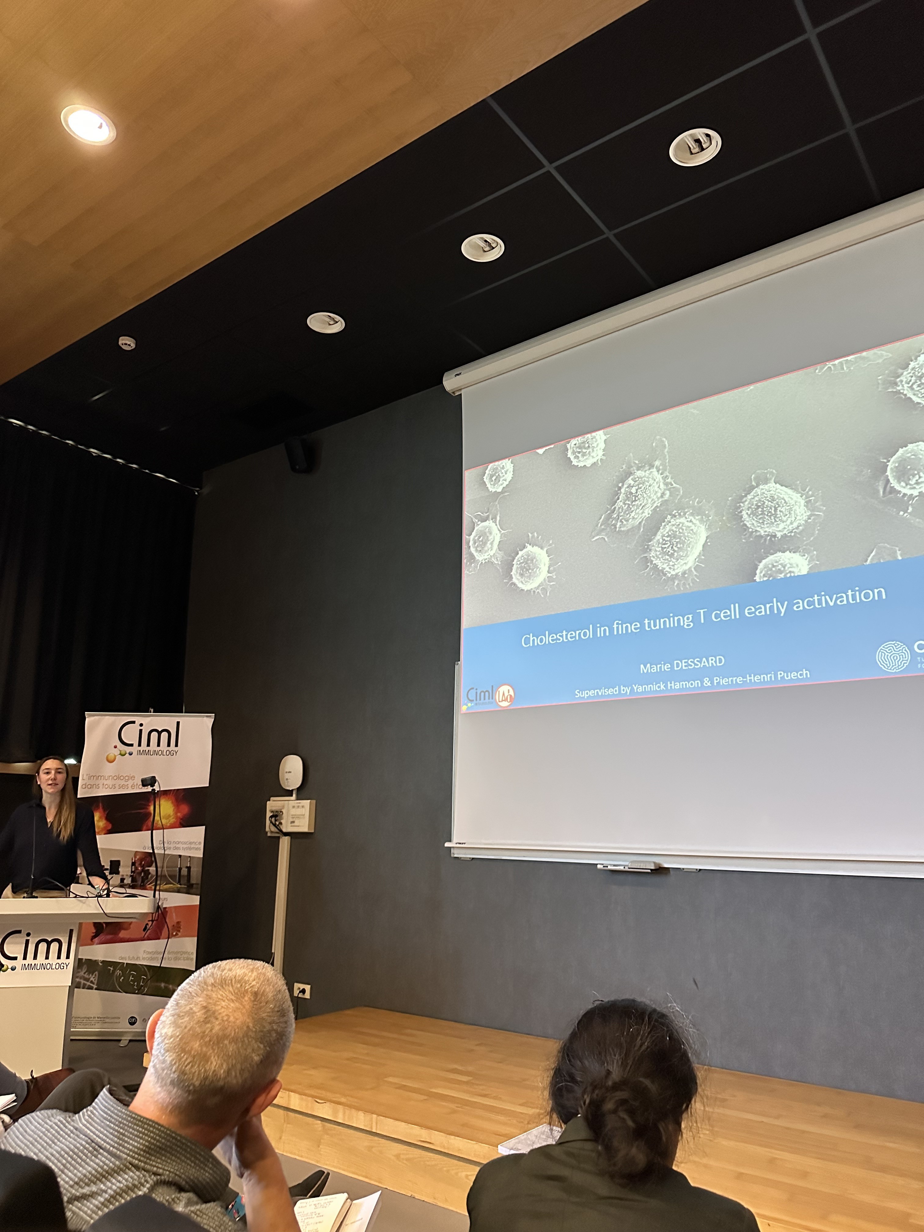 On April 16, 2026, Marie Dessard successfully defended her PhD thesis, titled “Cholesterol and phospholipids in fine-tuning T cell early mechanosensitivity”, conducted under the supervision of Pierre-Henri Puech (LAI) and Yannick Hamon (CIML).